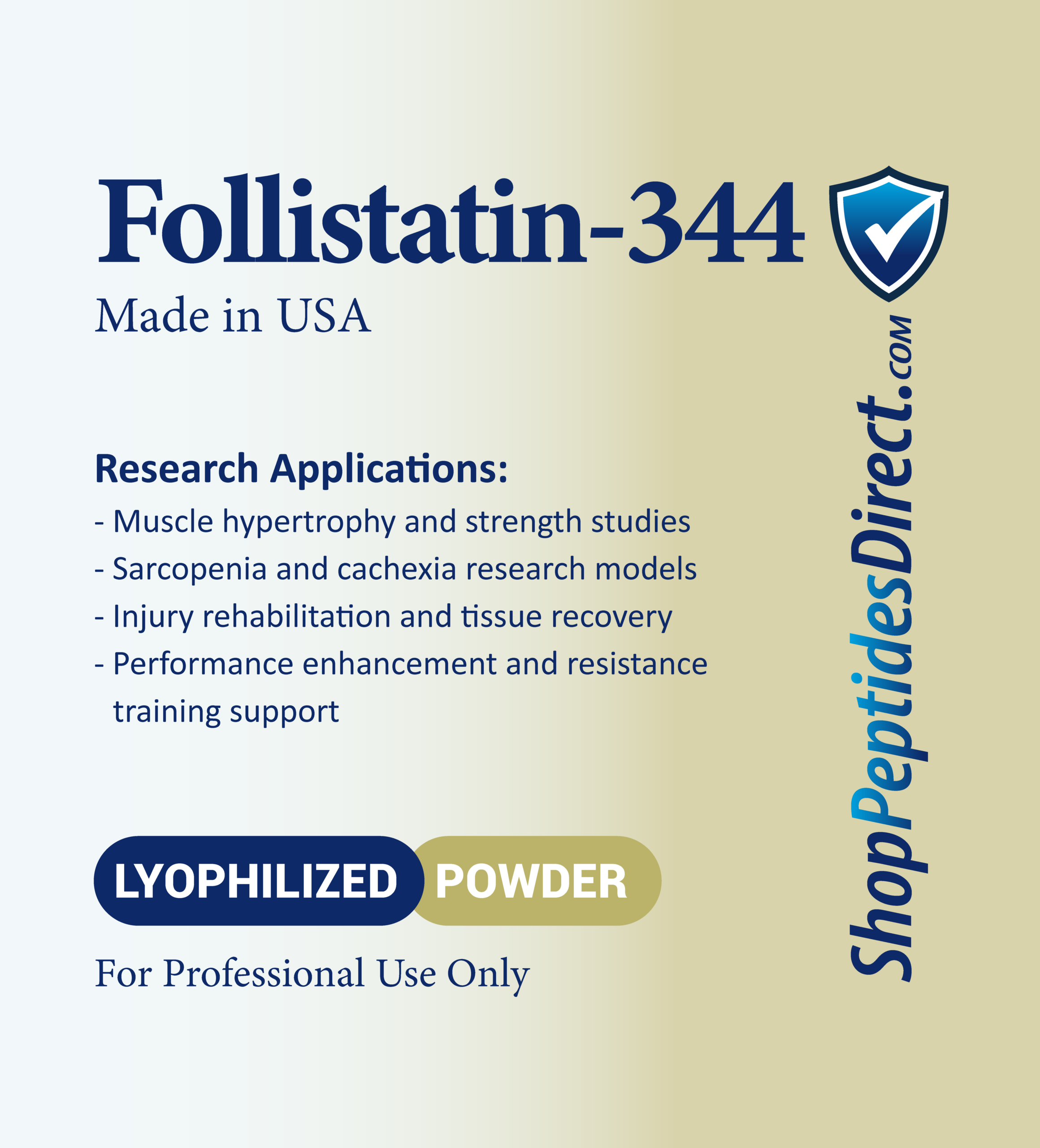 Follistatin-344 is a potent myostatin-binding protein studied for its remarkable ability to promote muscle growth by inhibiting the myostatin signaling pathway. Myostatin is a negative regulator of skeletal muscle mass, and Follistatin-344 neutralizes its activity, allowing enhanced muscle hypertrophy and regenerative potential. This peptide is of high interest in fields such as muscle wasting disorders, performance optimization, and regenerative medicine.