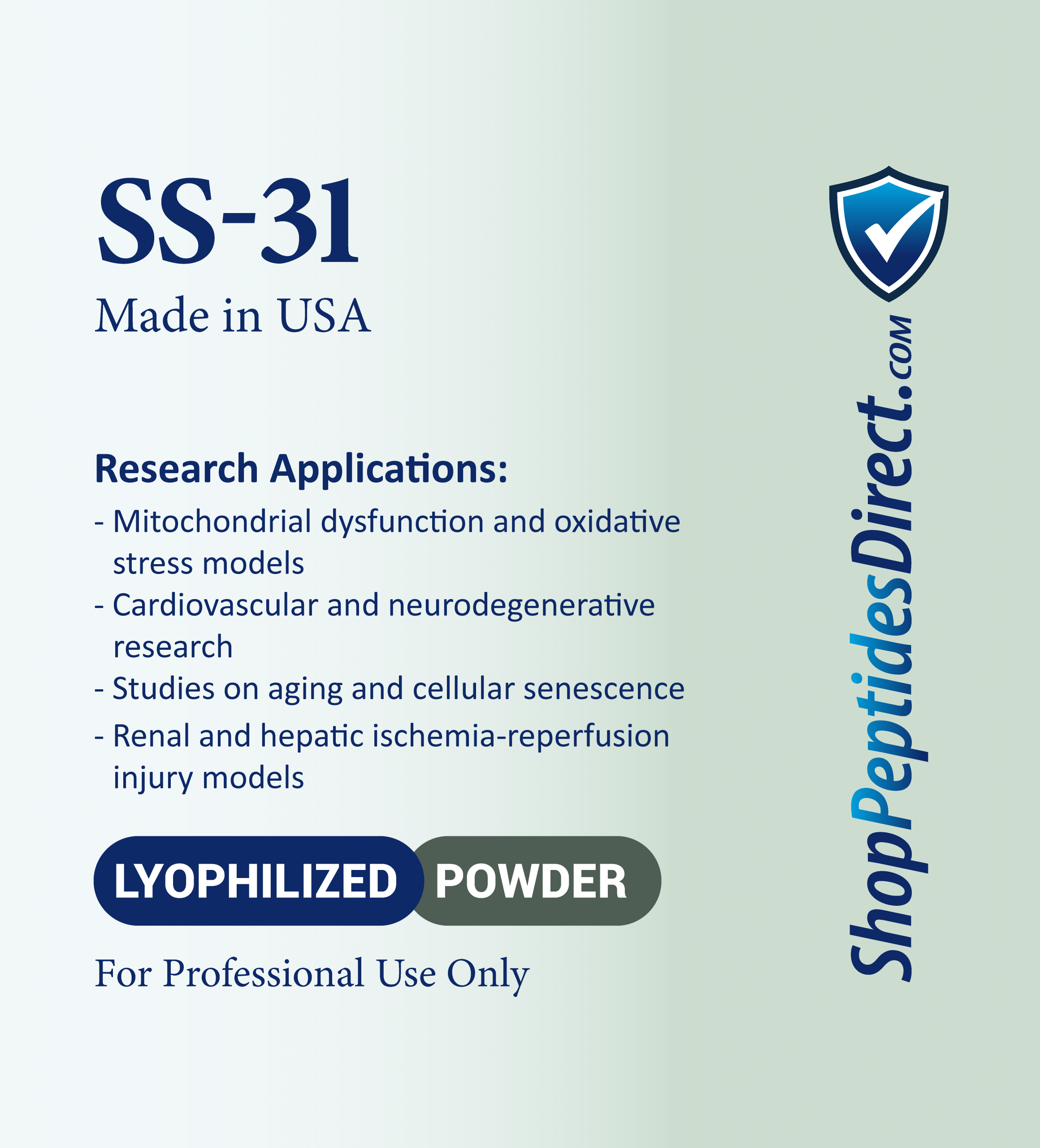 SS-31 stabilizes mitochondrial membranes, reduces oxidative stress, and improves energy production in stressed or aging cells.